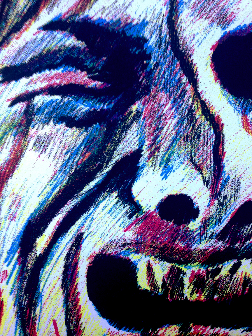 Bright and brutal 11.5x16" Four-Color CMYK Screenprint. Hand-drawn color separations. Signed and numbered edition of 53.