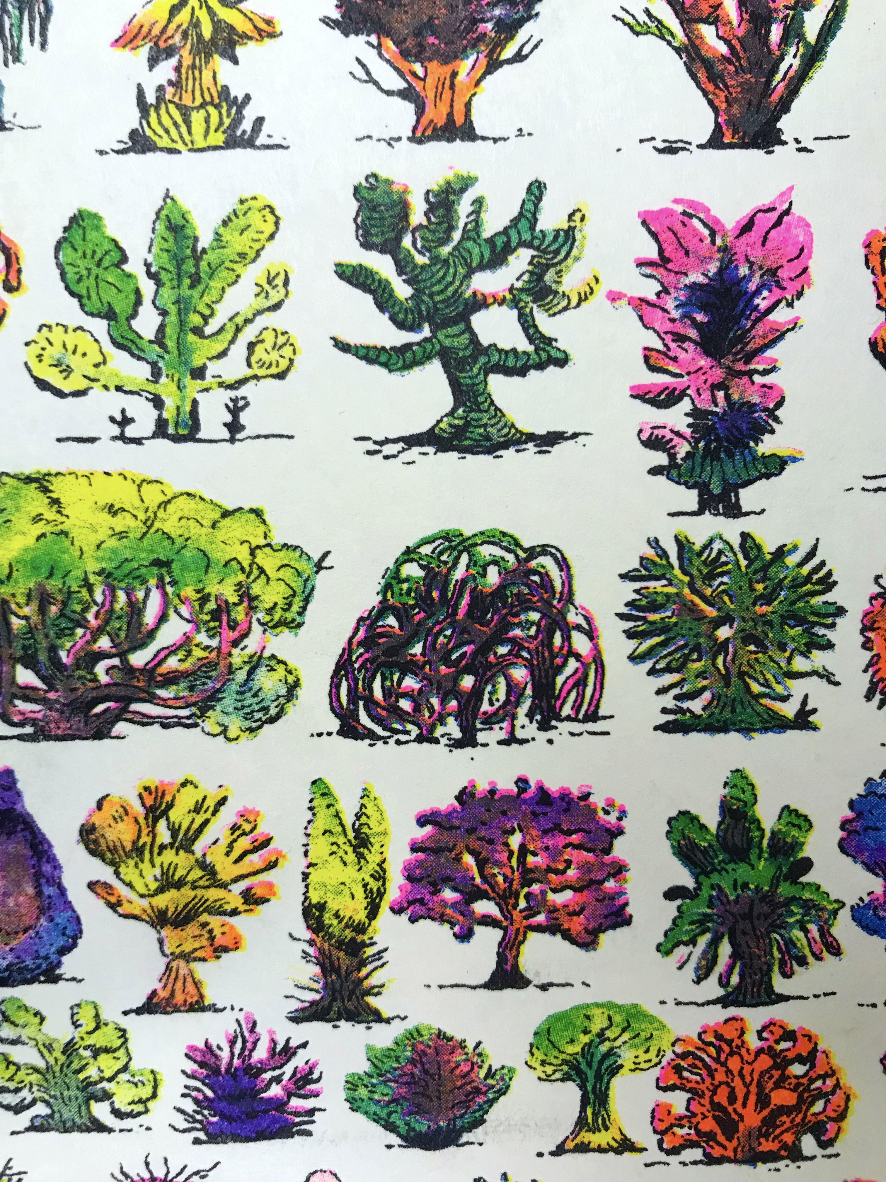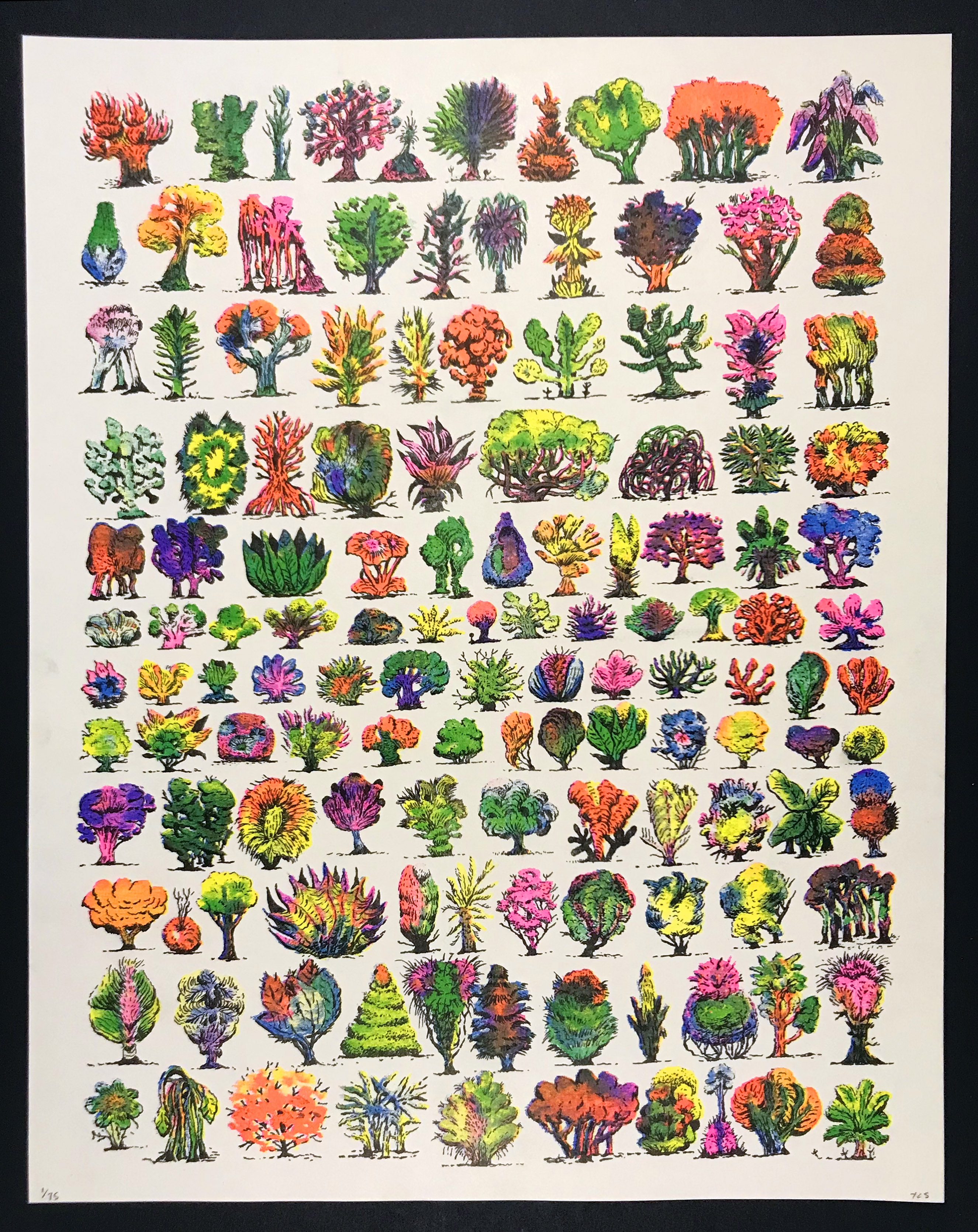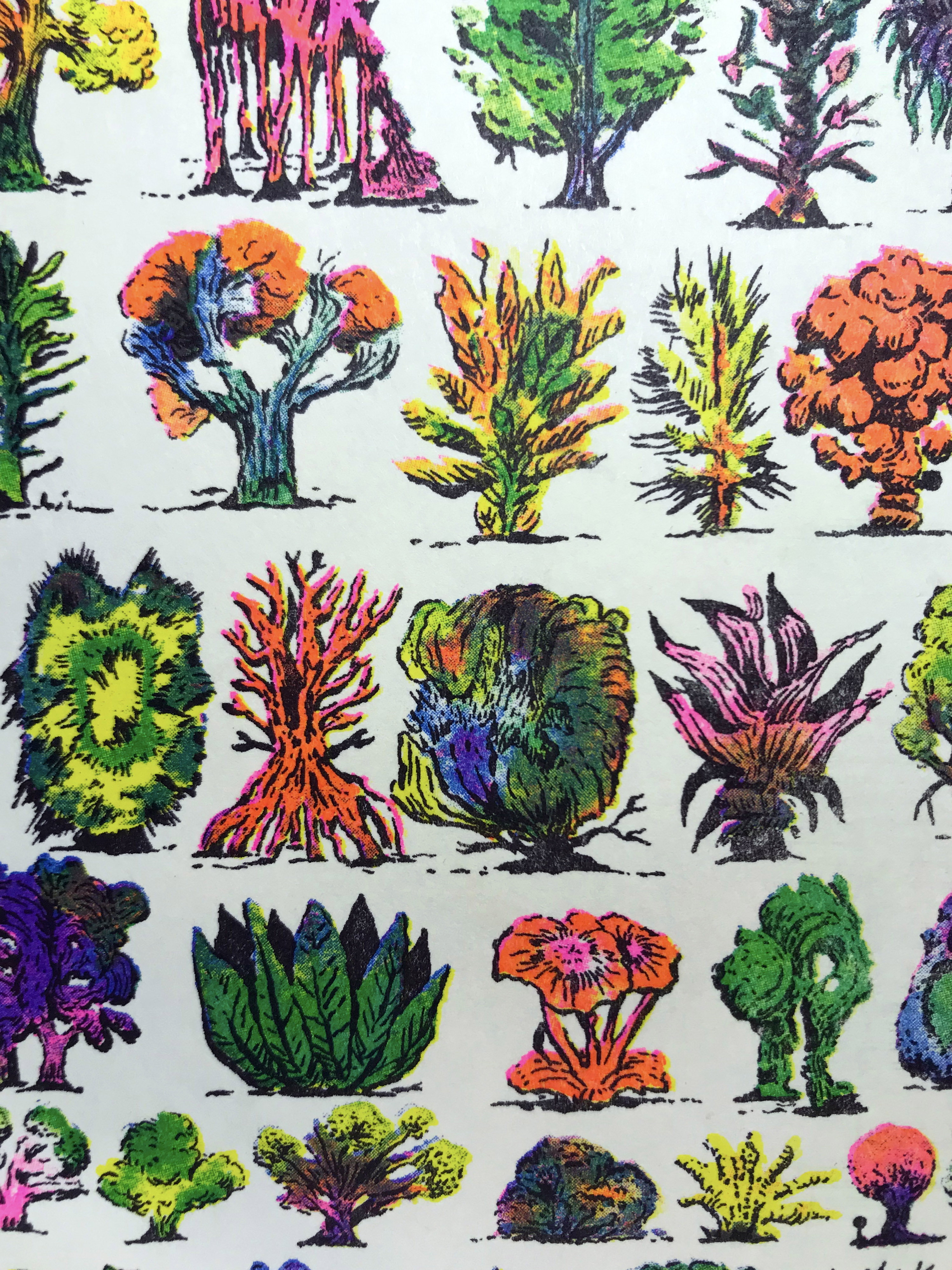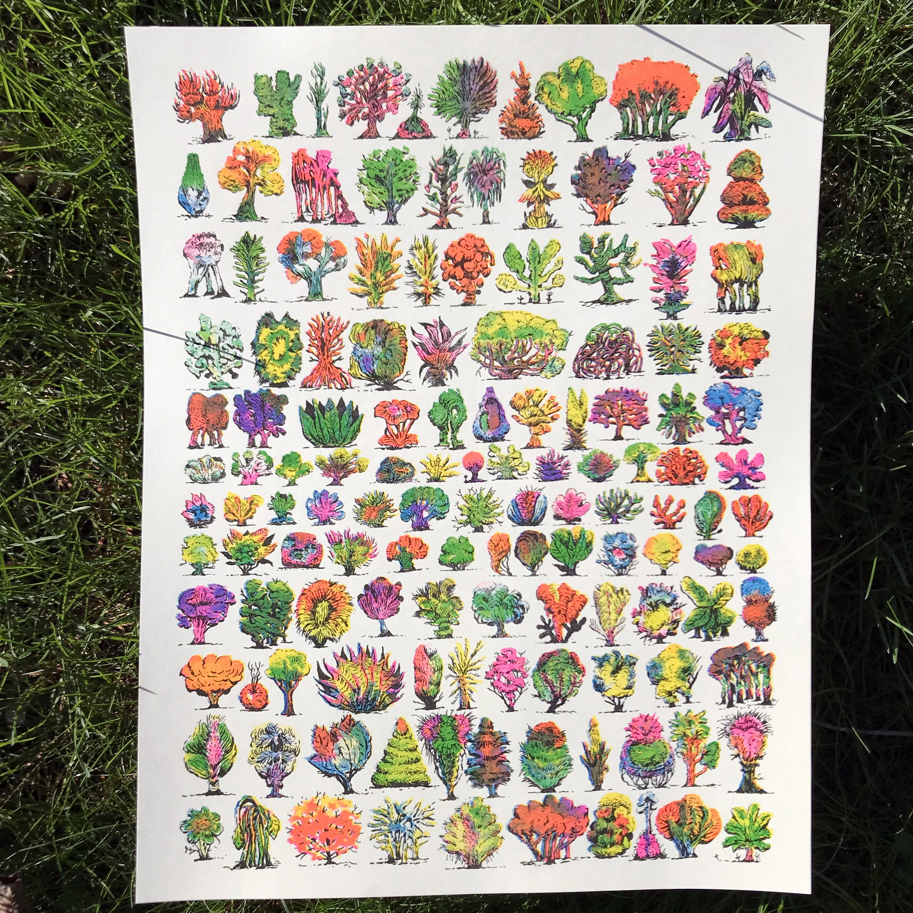 5-color risograph print of 132 imaginary trees.