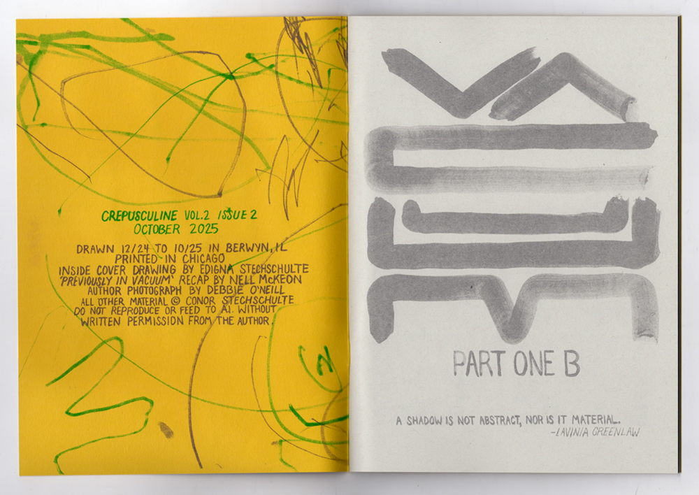 This second issue of my anthology series includes 29 new pages of the in-progress graphic novel, Vacuum in which strange operations are performed on a kidnapped couple in a motel room then two strangers arrive to an isolated community living in a remote forest.